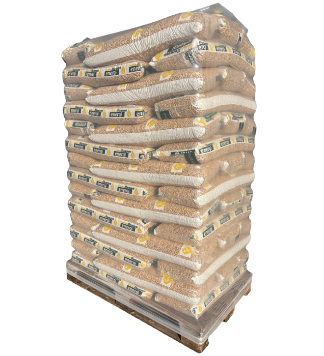 Træpiller 6 mm i 16 kg sæk 4,9 kWh – 896 kg pr. palle (56 x 16 kg)